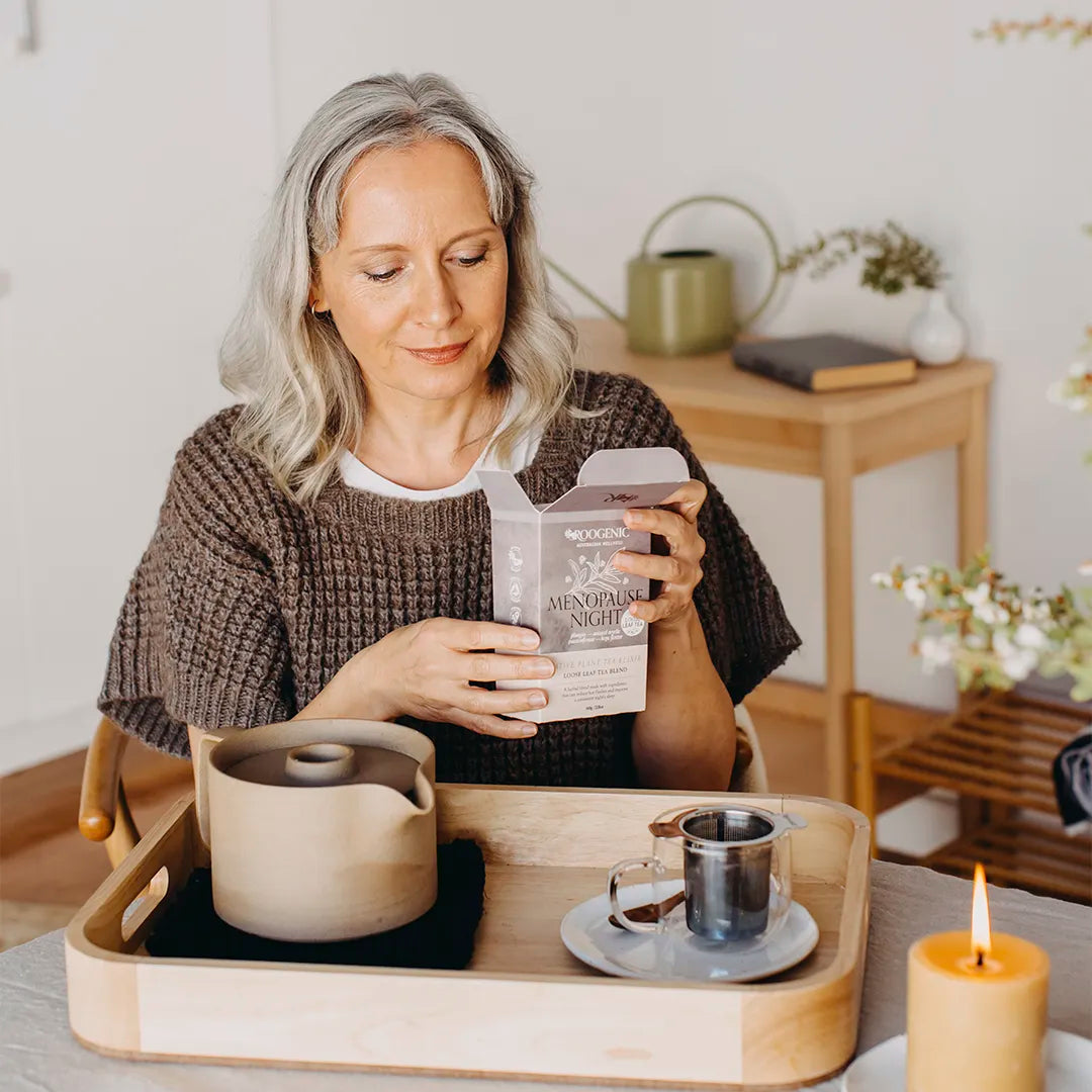 Our women's teas and powders are crafted with botanicals selected to support women’s health and wellbeing at every stage of life. With ingredients such as Nettle Leaf, Raspberry Leaf, Dandelion Root, Red Clover, Jilungin, Hops, Passionflower, and Shatavari Root. Roogenic’s blends are designed to ease menstrual and menopausal discomfort, support hormonal balance, enhance mood and promote restful sleep and long-term vitality.