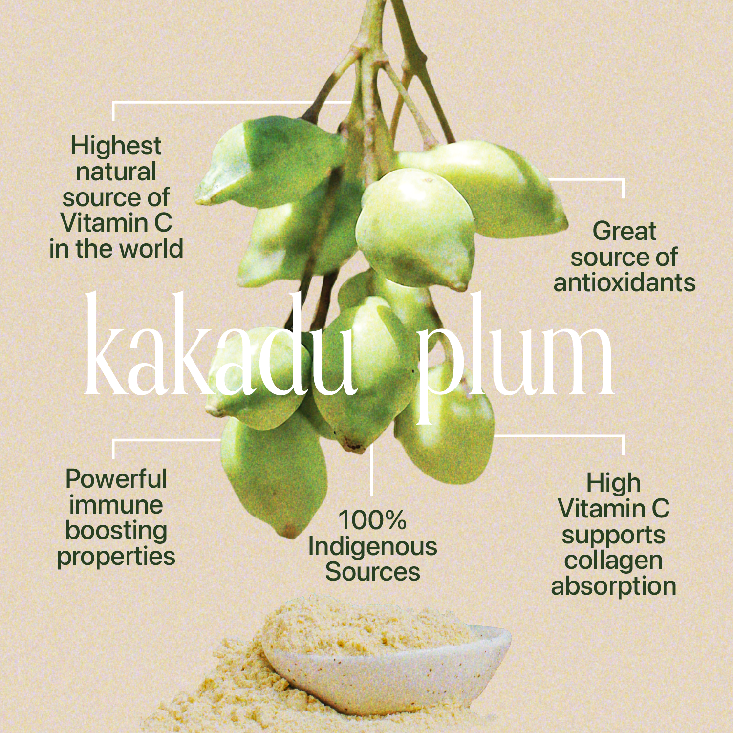 Our Kakadu Plum Powder is made from 100% Kakadu Plum with no additives or fillers. It’s processed by freeze-drying and milling the fruit into a fine powder.