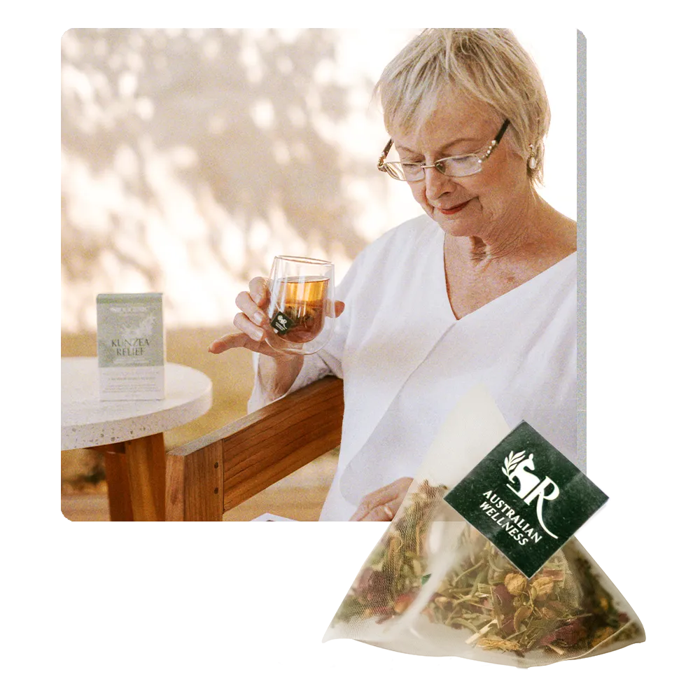 Formulated by naturopaths to help reduce inflammation and ease discomfort, Kunzea Relief Tea blends wild-harvested Kunzea with native lemongrass and antioxidant-rich pepperberries. These powerful Australian botanicals have been traditionally used to relieve swelling, soothe joints and support the body’s natural inflammatory response